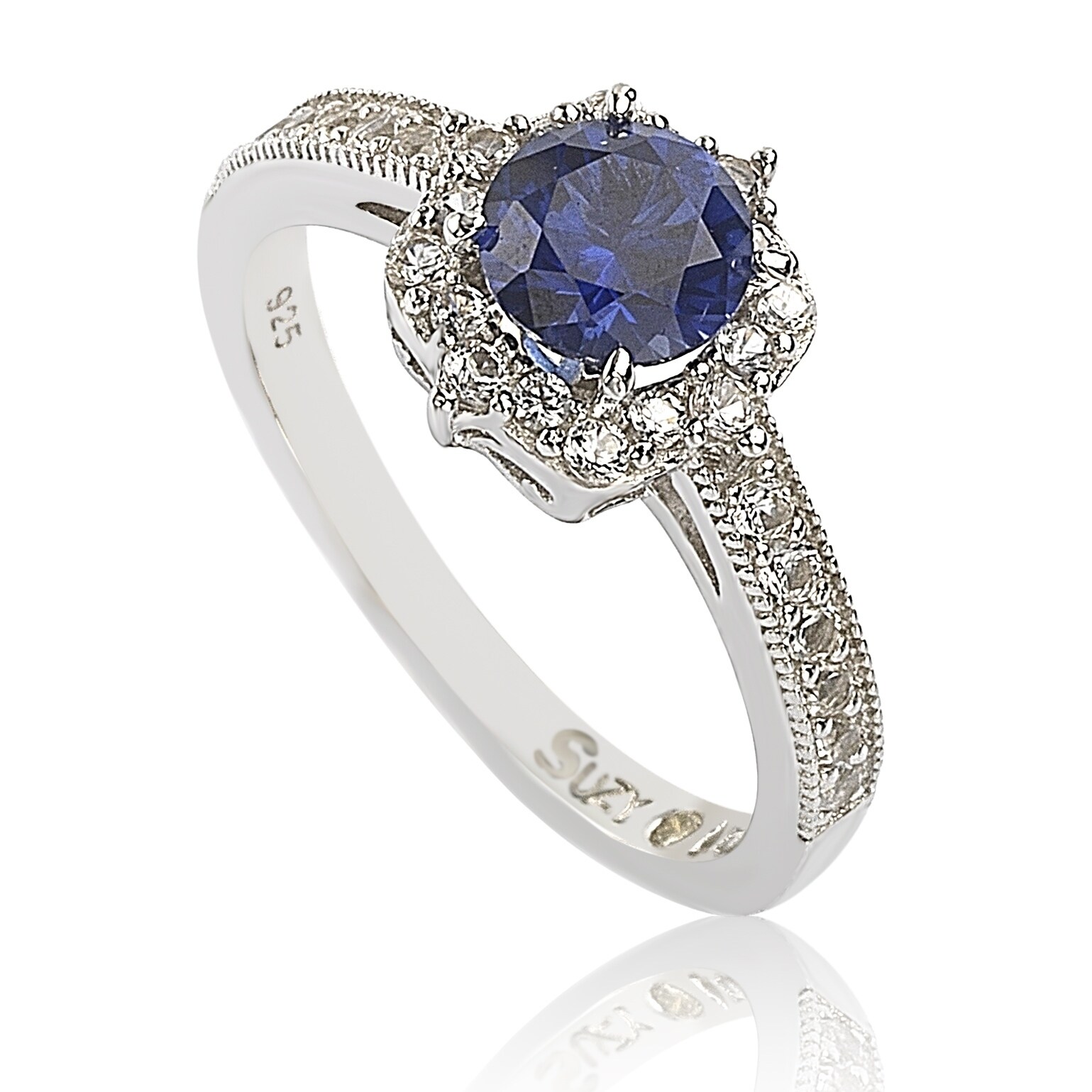 Suzy L Sterling Silver Sapphire Diamond Accent Center Stone Ring