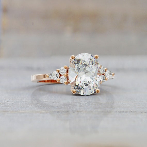 3 Carat Oval Engagement Ring Center Stone White Sapphire Oval Cut 10x8 Three Stone Side Ring Dimonds And Moissanite Pear Round Cut 0 36 Ct