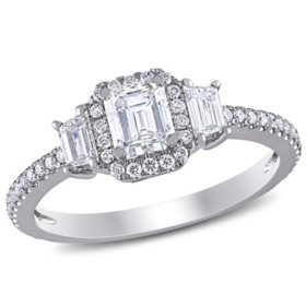 Allura 1 Ct T W Emerald Cut Diamond Three Stone Halo Engagement Ring In 14k White Gold Sam S Club