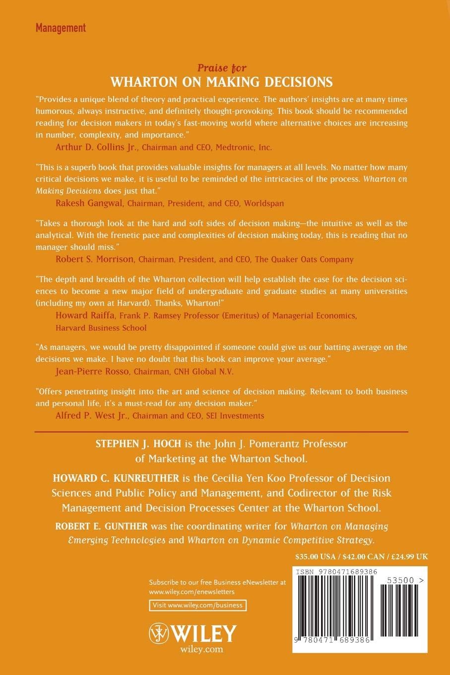 Wharton On Making Decisions Stephen J Hoch 9780471689386 Amazon