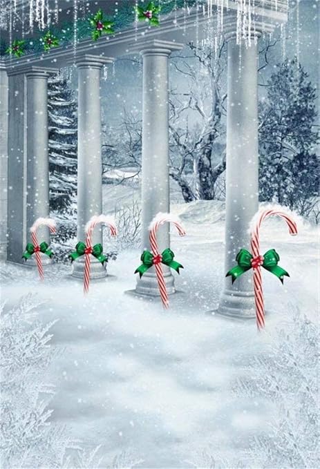 Ofila Winter Christmas Backdrop 5x8ft Polyester Fabric Winter Wonderland Photos Background Candy Canes Kids Christmas Photo Booth Winter Snow