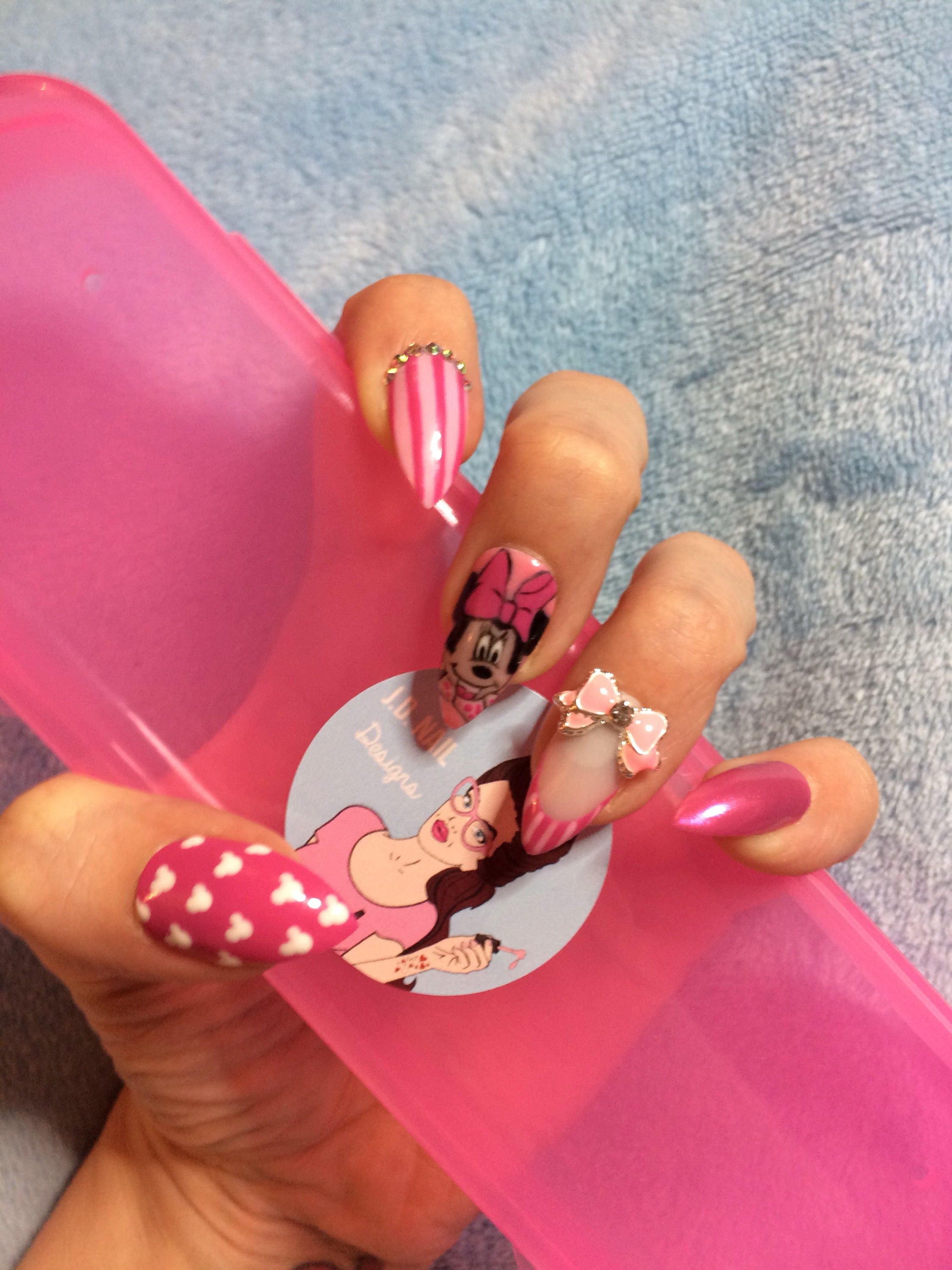 Disney Acrylic Nails 3d Minnie Mouse Marble Pink